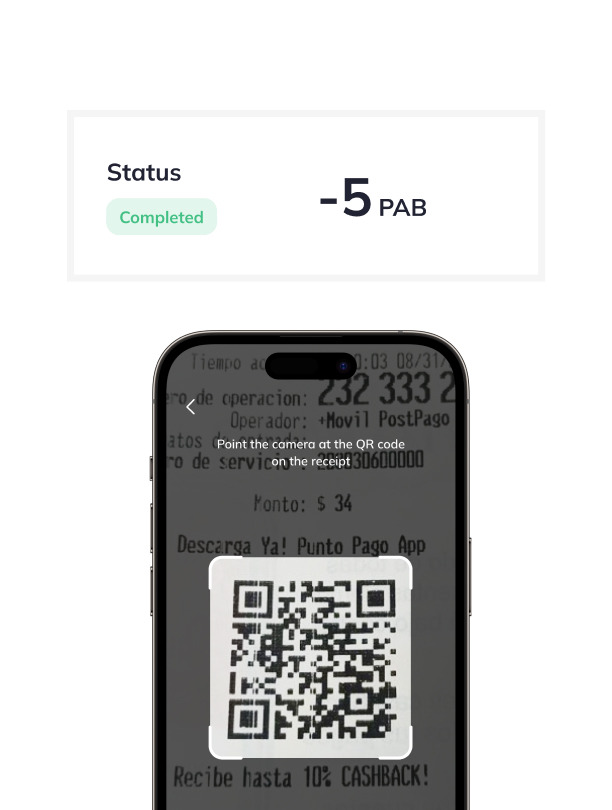 Escanee el código QR de un recibo o ingrese el número de pago para obtener toda la información sobre el pago.